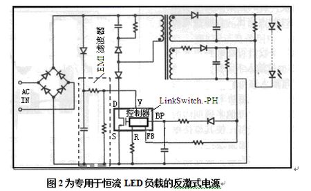 應該說如今有多種類型控制器可以構建恒流LED驅動電源-LED負載的反激式電源。在此僅以集成多項控制器LinkSwitch.-PH構建的LED驅動器為例作分析。