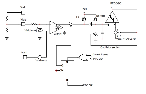 在下列情況時,VLBO可下拉至2V(VLBO(PD)):VLBO高于2V(高線路電壓時),以及VCTRL處于最大值的時間長于4ms(tPFCflag);Vbulk低于額定輸出的95%時。PFCPowerBoost功能在啟動時被禁止;最長下拉持續(xù)時間的典型值為5ms(tLBO(PDlimit));在后續(xù)最少70ms時間(tLBO(PDblank))內(nèi),開關(guān)保持在開路狀態(tài)。