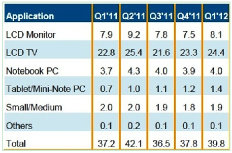 友達、新奇美、京東方、華映和瀚宇等廠商計劃于 2012年將更多資源投入到生產(chǎn)平板電腦面板上。盡管五代線和更低世代線主要以生產(chǎn)小筆電和平板電腦面板為主,但到 2012年第一季,預(yù)期有超過一半的小筆電和平板電腦面板將放在六代線和八代線上生產(chǎn)。