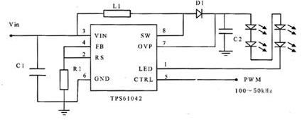 - 使用TI公司的TPS61042驅動4個LED燈管
