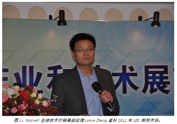 有業內人士說,2011年LED庫存過大,會使2012年的市場不如2011年。對此觀點,Marvell公司全球技術行銷高級經理Lance Zheng有不同看法,“國內裝機量非常多,這個是造成產能過剩的原因,但提高光效會是刺激LED行業發展的非常好的方式,因為光效一提高所用的LED數量就會小,因此能降低成本,促進LED市場發展。至于說2012年整個產業應該還是保持增長,這里的亮點就是LED照明。”他在“2012產業和技術展望媒體研討會”上這樣表示。