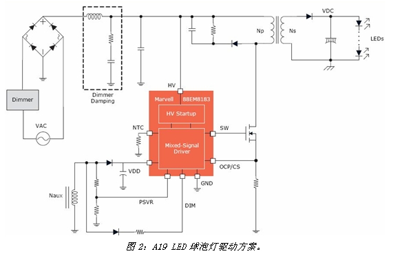 消費者用LED節能燈取代白熾燈等傳統照明解決方案的同時,也希望得到同樣或更好的照明體驗。不幸的是,他們常常發現LED燈在調光能力上有問題,因此覺得LED燈幾乎不能調光或調光時會閃爍。很多LED燈與家中已安裝的壁式調光器也不兼容。Marvell最新的88EM8183深度調光單級交流/直流LED驅動器IC為OEM廠商和ODM廠商提供了兼容性最廣泛的調光解決方案,該IC與全球市場上絕大多數調光器都兼容,而且提供卓越的光輸出質量,可提高消費者的滿意度,減少退貨。
