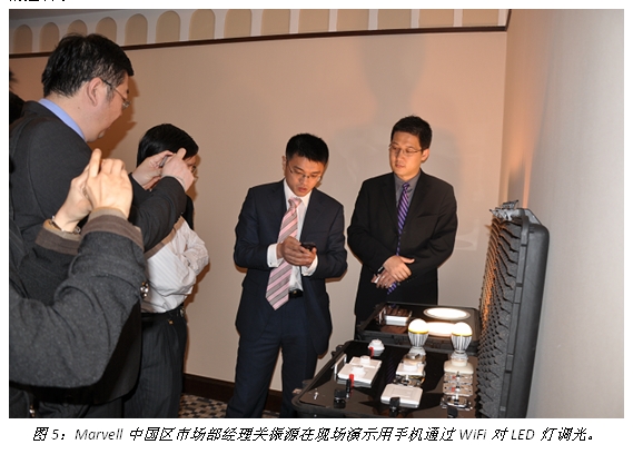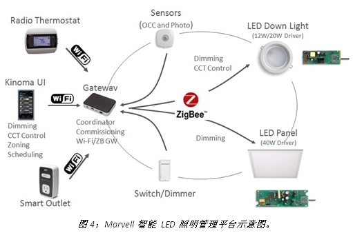 Marvell智能 LED照明管理平臺提供了完全集成的LED照明和無線控制系統,因此不論是易用性的提升還是安裝成本的降低都趨向于極致,大大簡化了使用和維護難度,使得非專業人員也能輕松應對。該平臺的一大特色是允許終端用戶可以使用智能手機和平板電腦方案,使他們可以方便地從任何地方管理、分析并維護一個更具性價比的數字照明方案。