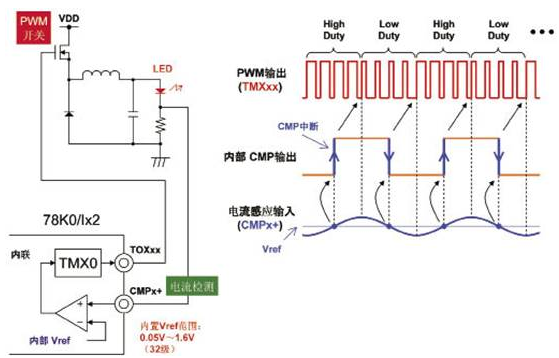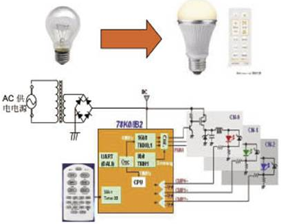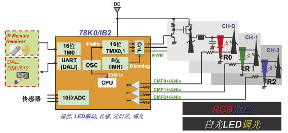 78K0/IB2低成本高亮度LED調光(調色)控制的優點: