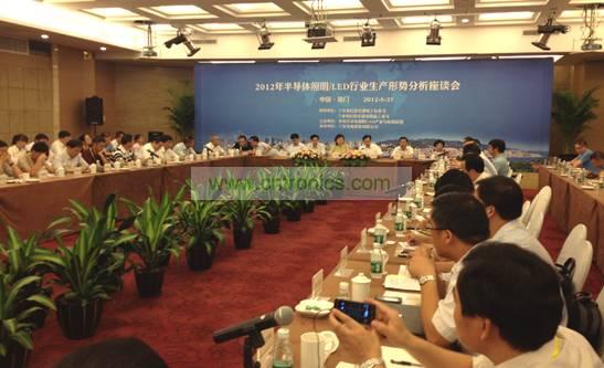 由中國半導體照明/LED產業(yè)與應用聯(lián)盟主辦、三安光電股份有限公司承辦的“2012年全國半導體照明/LED行業(yè)生產形勢座談會”8月31日在廈門召開。工業(yè)和信息化部消費品工業(yè)司、電子信息司、福建省信息化局、廈門市經(jīng)濟發(fā)展局有關領導以及全國照明和LED領域60多家企業(yè)負責人、中國照明電器協(xié)會、中國光學光電子行業(yè)協(xié)會、福建省光電子行業(yè)協(xié)會、廈門市光電子行業(yè)協(xié)會等相關行業(yè)組織出席座談會。