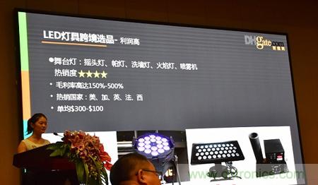【導(dǎo)讀】周慧榮現(xiàn)場表示,敦煌網(wǎng)的數(shù)據(jù)顯示,2013-2014年海外買家對中國LED燈具采購快速增長,2015年上半年LED燈具海外采購總體增長開始放緩,但是LED燈具中的燈管、球泡、筒燈等受到海外買家歡迎,室內(nèi)照明燈具、舞臺(tái)燈、植物生長燈等利潤高,隨著采購?fù)镜絹恚掳肽暝龇型麤_高。