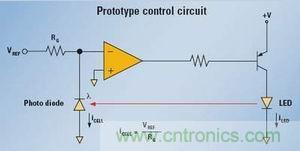 【導(dǎo)讀】在利用光來(lái)控制應(yīng)用的過(guò)程中,要長(zhǎng)期保持原始設(shè)定的發(fā)光強(qiáng)度需要一個(gè)控制電路來(lái)監(jiān)控發(fā)光狀況,并控制供給光發(fā)射器件的電流以保持輸出恒定。而采用一個(gè)簡(jiǎn)單的運(yùn)算放大器電路就做到,即便發(fā)光器件老化,通過(guò)調(diào)整LED電流,一個(gè)控制環(huán)也可維持恒定的光強(qiáng)度。