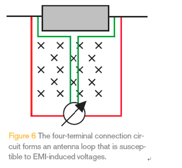 當溫度輕微升高或者降低時,在不同材料的接觸面上會產生熱電勢,這種效應對低阻值電阻的影響非常重要,盡管通常情況下熱電勢數值非常小,但微伏級的熱電勢能夠嚴重地影響測量結果。