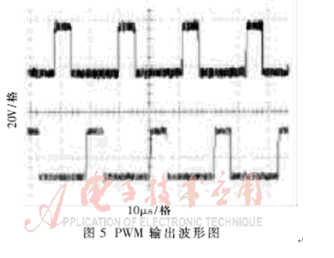 在以IGBT設(shè)計的逆變電源中,PWM控制電路是極其重要的組成部分,SG3525脈寬調(diào)制型控制器作為SG3524的改進型,更適合于開關(guān)器件的雙端DC-DC變換器,它的外圍電路原理圖如圖4所示,輸出波形如圖5所示。