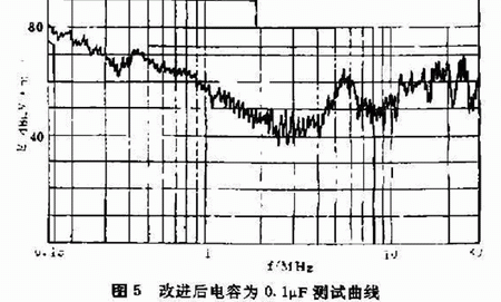 從測(cè)試圖4和圖5中能很清楚地看出測(cè)試結(jié)果。不合格的為選用0.OμF的電容濾波,改進(jìn)后選用0.1μF的電容濾波測(cè)試結(jié)果臺(tái)格。濾波器的安裝質(zhì)量同樣對(duì)衰減特性影響很大,只有把濾波器正確地安裝到UPS不間斷電源上,才能獲得預(yù)期的衰減特性.