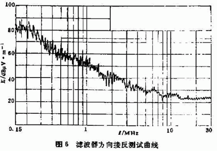 通常EMI濾波器的電路是無(wú)源網(wǎng)絡(luò),具有其互易性,但從實(shí)際測(cè)試中了解到,有些濾波器輸入輸出端命名是針對(duì)干擾源而言的.有些命名是針對(duì)電路而言的。因此,在抑制干擾能力上就稍有差別 從圖6和圖7可以清楚地看出,濾波器反接時(shí).對(duì)低頻干擾抑制減弱,從而使UPS系統(tǒng)內(nèi)部干擾信號(hào)竄入電源線,而引起超差.經(jīng)轉(zhuǎn)向后,就合格了。