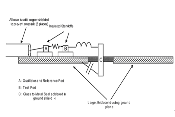 測試電感性能的最有效方法就是將被測試電感放置在最終開關電源電路上,然后對此電路的效率進行測量。但是,這種測試方法需要有最終電路,不易采用?,F在,有一種相對簡單的測試方法,可以在設計開關電源前對電感的磁芯損耗進行測試(在其設定的開關頻點上)。首先,將磁芯串連放置在低損耗電容介質上(比如鍍銀云母)。然后,用一系列共振模驅動。其中介質的電容值需要與被測電感的開關頻率一致。最后采用網絡分析儀來完成整個測試過程(信號發生器加上一個射頻伏特計或者功率計也可以完成測試)。測試設備的結構如圖2所示。