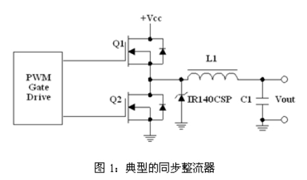 圖1示出了由一個高側(cè)MOSFET(Q1)和低側(cè)MOSFET(Q2)組成的典型同步整流器,為了實現(xiàn)最佳的同步整流器設計,這兩個MOSFET需要具備不同的特性。一般來說,您可以通過搜尋一個具有最低Qswitch×RDS(ON)性能因數(shù)的器件來選擇最佳的Q1 MOSFET。Qswitch被定義為柵-源極電荷的后柵極臨限部分與柵-漏極電荷之和(Qgs2 + Qgd)。相比之下,最佳的Q2 MOSFET必須擁有非常低的RDS(ON)以及良好的Cdv/dt抗干擾。由于Q2的漏極與轉(zhuǎn)換器的開關節(jié)點相連,因此,它承受著地電位與Vin之間的瞬變電壓。隨著Q1的導通和關斷,漏極電壓會以dV/dt的速率進行變化,該變化將被容性耦合至Q2的柵極,并能夠引起一個足以使MOSFET導通的電壓尖峰,從而產(chǎn)生擊穿電流。因此,必須最大限度地減小Qgd/ Qgs1(柵-漏極電荷/臨限前柵-源極電荷)之比率以降低Cdv/dt導通電位。