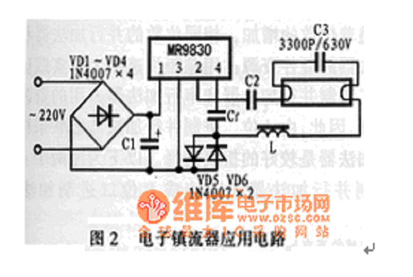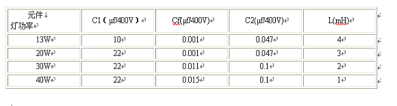 用MR9830組裝的電子鎮(zhèn)流器能可*地驅(qū)動(dòng)40W以下功率的各種日光燈和節(jié)能燈。而且體積小,效率高,故障率極低,組裝工藝也非常簡(jiǎn)單。圖2中的C1、C2、及Cf和電感L的參數(shù)可根據(jù)需推動(dòng)日光燈管、節(jié)能燈管的功率不同而不同,具體的參數(shù)設(shè)置可參見(jiàn)表1。