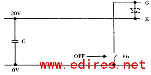 硬驅動關斷如圖4所示電路,當將V6 開通時,電容C 對門極反向放電,將IGCT關斷。由于電路的極低電感(5 到15nH 取決于IGCT 的型號)和大電容器組,IGCT對門2陰極端的電磁噪音不敏感。與IGCT相比較,傳統的GTO驅動裝置大約有200 nH的電感和更小的電容器組。