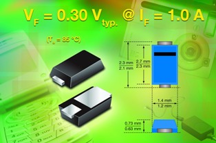 日前,Vishay Intertechnology宣布,推出兩款新型肖特基整流器 --- MSS1P2U和MSS1P3U,在+85℃和+25℃時的前向壓降分別只有0.35V和0.4V。器件采用小型MicroSMP功率封裝,額定電壓分別為20V(MSS1P2U)和30V(MSS1P3U),輸出電流為1A,Vishay此次推出的新型器件的高電流功率密度和低熱阻有助于實現(xiàn)節(jié)省空間的設(shè)計。