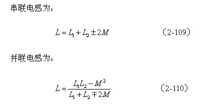 【說明】互感M有正負(fù),圖2-40-a和圖2-40-c的接法互感M為正,圖2-40-b和圖2-40-d的接法互感M為負(fù)。兩個(gè)線圈之間的互感M為:
