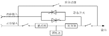 (2)由于沒有采用靜態開關,交流輸入電源故障時,將負載從交流輸入電源轉換至逆變器所需的轉換時間較長,不能滿足復雜的靈敏負載的需要。