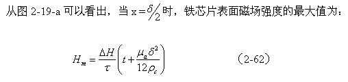 從圖2-19-a中可以看出,由于渦流產生反磁化作用的緣故,在鐵芯或鐵芯片中心磁場強度最低邊緣磁場強度最高。