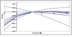 在固定溫度下獲得良好的測量精度并不困難,若在裝配電池組時已對BMU進行了校準便更容易。但實際情況中,電池組通常都會經受各種溫度變化,所以溫度漂移是區分真正高性能BMU和普通BMU的關鍵參數。