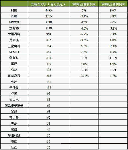 • 水清木華公布了09年全球被動元件供應商營業(yè)額排名