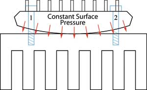 除TinyDIP/SMD外,SPM的表面都會(huì)有一定的翹曲。圖4為這種翹曲的一個(gè)夸張示意。模塊是用一些從表面中間穿出的螺絲緊固在散熱片上。如果安裝恰當(dāng),這種凸?fàn)畋砻婺鼙WC有足夠的熱量從模塊傳遞到散熱片。如果緊固螺絲用力不均,就可能在模塊內(nèi)產(chǎn)生應(yīng)力,導(dǎo)致模塊破損或性能下降。建議采用圖4所示的螺絲緊固順序(先按1?2的順序預(yù)緊固,再按2?1的順序最終緊固)。通常,預(yù)緊固扭矩為最大額定緊固扭矩的25%。只要散熱片與器件緊貼好了,就可通過(guò)SPM的內(nèi)置熱敏電阻獲取散熱片的溫度,從而簡(jiǎn)化電路板的設(shè)計(jì)。