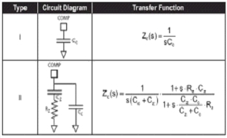 補償回路可用來使得升壓電路穩(wěn)定的操作,可選用Type-Ⅰ補償(一個簡單積分電路)或者TypeⅡ補償(一個積分電路及額外的極點-零點)。補償?shù)念愋托枰暪β始壍慕辉筋l率的相位而定。