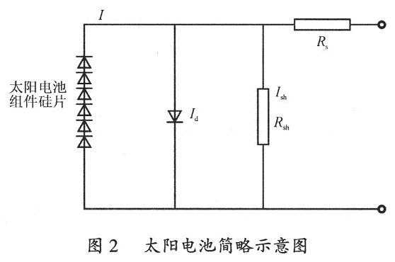 由于一個太陽電池組件一般包含36或72塊太陽電池硅片,不同的硅片的暗電流是不一樣的,由圖2所示太陽電池簡略示意圖可分析如下。