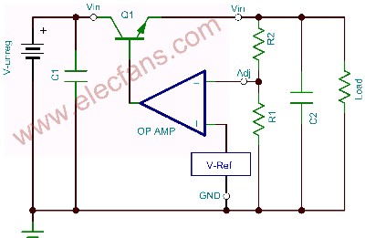 圖1基本的線性穩(wěn)壓器三端可調穩(wěn)壓器的輸出電壓如圖2所示