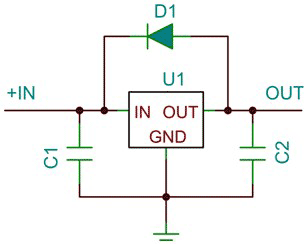另一個動態(tài)性能變量是輸出噪聲。通過增加穩(wěn)壓器輸出端的濾波器電容一般可以降低輸入紋波和輸出噪聲,但是會延長瞬態(tài)恢復時間。線性穩(wěn)壓器的運行依賴于一個內部增益級。為了防止該增益級出現(xiàn)振蕩,通常會需要一個最小輸出濾波器電容(請參見圖1中的C2)。一個輸入濾波器電容(請參見圖1中的C1)將有助于穩(wěn)壓器服務于瞬態(tài)負載,尤其是在穩(wěn)壓器遠離電源時更需要這樣一個輸入濾波器電容。許多穩(wěn)壓器都不容許存在反向電壓。如果輸出電容被充電至輸出電壓,同時輸入短路至接地,那么穩(wěn)壓器將出現(xiàn)反向電壓,并且在所有電路獲得放電以前穩(wěn)壓器都會鎖閉在某種未知狀態(tài)中。這種故障狀態(tài)可能會引起穩(wěn)壓器自毀。為了避免出現(xiàn)這種故障模式,可能會需要一個反向二極管鉗位(請參見圖3)。