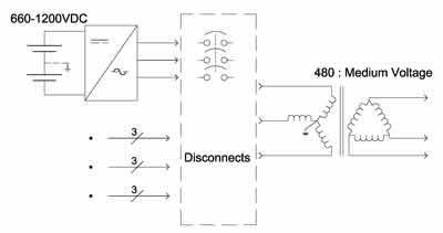 過采用可分離的兩極+600和-600VDC電池組數組實現直接轉換這項新技術,無需在低壓三相電網上配備變壓器。這種配置不僅提高了發電效率,而且不需要傳統上所要求使用的逆變器變壓器,降低了相關的系統平衡(BoS)成本,還避免了與單極配置有關的不必要的線路衰減。這項技術還為電力集成商和公用電力事業機構的大型商業或公用安裝項目帶來了更多好處。例如,通常規模在1到2兆瓦的商業項目,在連接點位于大樓入口變壓器低壓側要求配有一至八個逆變器,并且每個逆變器都要配有單獨的、定制的隔離變壓器——即使變壓器已與逆變器集成。而真正的無變壓器設計的逆變器才能支持直接的連接,不需要任何其它的變壓器設備和定制修改,而且也不會產生系統平衡成本。對于那些中壓變壓器連接點在5到12.7千伏之間的公用安裝項目,可將多個無變壓器逆變器整合成一個大小適當的標準中壓變壓器。變壓器可以放在電場的任何位置,以靠近逆變器是最合適的。
