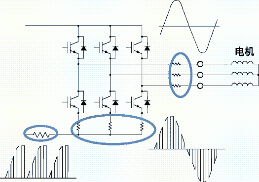 在單個(gè)IGBT相位腳上對(duì)電流的取樣看起來(lái)更容易操作了,但實(shí)際上卻不能降低對(duì)載波頻率取樣處理的需求。到目前為止,最簡(jiǎn)單的、容易獲得的電流信號(hào)來(lái)自于電機(jī)的相位超前,信號(hào)內(nèi)容僅是基本的變頻電機(jī)電流。需要考慮的一個(gè)重要因素是,小的差分信號(hào)在幾毫伏范圍內(nèi),在600~1200V電壓間變動(dòng)。另外,由于IGBT變換器相的作用,普通模式電壓以最高10V/ns的dV/dt速率在-DC到+DC間變動(dòng)。