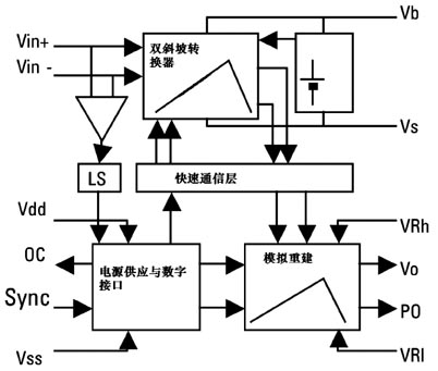 電機(jī)電流是通過(guò)使用一個(gè)外部分流晶體管來(lái)感測(cè)的,HVIC可將小的差分電壓(±250mV)通過(guò)一個(gè)精密電路轉(zhuǎn)換為時(shí)間間隔,這個(gè)精密電路的紋波去除功能有助于顯示小的群延遲。時(shí)間間隔是快速瞬變的,會(huì)被帶到輸出端。這樣就可以獲得與測(cè)量電流相對(duì)應(yīng)的模擬輸出電壓,以便與外部參考電壓相比較,最大采樣率為40kSPS。對(duì)于頻率高達(dá)20kHz的非對(duì)稱PWM調(diào)制來(lái)講,這個(gè)采樣速率富富有余。20kHz時(shí)的最大延遲小于7.5s,對(duì)于被用來(lái)IGBT保護(hù)的電流感測(cè)信號(hào)來(lái)說(shuō)也夠快了。圖2是電流感測(cè)電路。