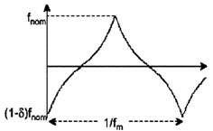 ---利用時鐘發生器中PLL的特性,以圖2所示的Lexmark曲線,以系統時鐘為中心作小幅度的調變,將可使EMI的能量平均散布在一小段的頻譜范圍中,以降低單一頻率EMI的峰值,如圖3所示。