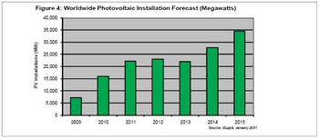 此外,預(yù)計(jì)2011年西班牙、法國和捷克的PV市場不會(huì)擴(kuò)張,這些國家正在推行嚴(yán)格的措施來限制其國內(nèi)的太陽能投資熱潮。