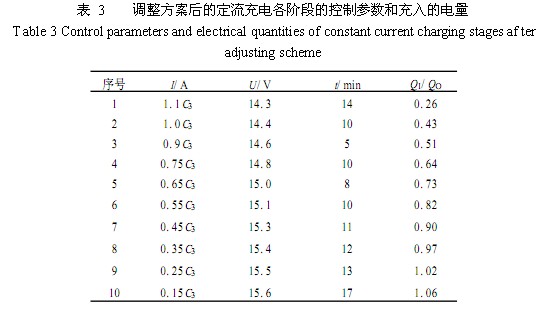根據(jù)分段恒流充電試驗(yàn)的結(jié)果與分析 ,對(duì)分段恒流充電控制方案作了如下調(diào)整 :