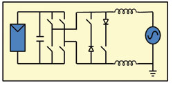 無變壓器的DC/AC逆變器在歐洲廣泛應(yīng)用,但是在美國,這種產(chǎn)品只是最近才在某些地區(qū)被使用。無變壓器的逆變器拓撲結(jié)構(gòu)有很多種,而Fraunhofer研究所開發(fā)的HERIC拓撲表現(xiàn)出了很高的效率。傳統(tǒng)的全橋逆變器的結(jié)構(gòu)如圖1所示,HERIC拓撲如圖2所示,此圖中還顯示了兩種新的開關(guān)/二極管對。這種拓撲利用獨有的續(xù)流路徑來減小開關(guān)和導(dǎo)通損耗,使效率提升到98%以上。