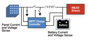 在另一個實例中,ST微電子開發(fā)了一個高度集成的HBLED太陽能MPPT充電器/驅(qū)動器。這個全集成的方案帶有MPPT優(yōu)化的電池充電器和集成的HBLED驅(qū)動器。這個產(chǎn)品將在2010年晚期發(fā)布,非常適合于HBLED街燈照明應(yīng)用。