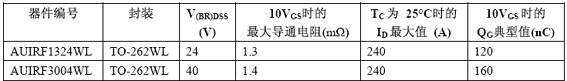 這款新型車用MOSFET系列適合需要低導(dǎo)通電阻(Rds(on))的通用大負(fù)荷/高功率通孔應(yīng)用,內(nèi)燃機(jī)(ICE)汽車電動(dòng)助力轉(zhuǎn)向系統(tǒng)和電池開(kāi)關(guān),以及各類微型和全混合動(dòng)力汽車。新器件采用IR先進(jìn)的硅和封裝技術(shù),在顯著提高性能的同時(shí)可與現(xiàn)有的設(shè)計(jì)標(biāo)準(zhǔn)相匹配。