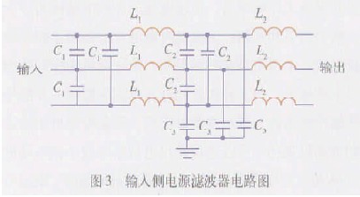 一般選取其參數為:C1 = 0.47 μ F,C2 = 0.47 μ F,C3= 1 000 pF,L1 = 3 mH,L2 = 100 μ H。