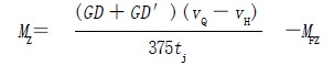 式中,MZ為制動轉矩;GD為電動機轉動慣量;GD′為電動機負載折算到電動機側的轉動慣量;vQ 為制動前速度;vH 為制動后速度;MFZ 為負載阻轉矩;tj 為減速時間。一般情況在進行電動機制動時,電動機內部存在一定的損耗,約為額定轉矩的18%~22% 左右,如計算出的結果小于此范圍則就無需接制動裝置。
