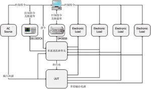 典型的AC/DC電源測試系統(tǒng)包含了程控交流電源、程控電子負載、高精度數(shù)字萬用表、數(shù)字示波器、多通道程控開關以及工控機和測試軟件。