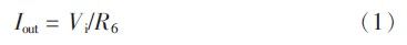 電流控制電路采用數(shù)模轉(zhuǎn)換器芯片TLV5613加上V/I轉(zhuǎn)換電路構(gòu)成穩(wěn)定電流源,可通過單片機(jī)程序控制輸出所需要的電流給測(cè)量回路供電以滿足系統(tǒng)測(cè)試對(duì)電流的要求。在極性測(cè)試環(huán)節(jié)可給出合適的電流值,便于系統(tǒng)測(cè)量二極管電壓值并據(jù)此判斷二極管的好壞及極性;在特性測(cè)試環(huán)節(jié)可根據(jù)設(shè)定電流值增大或減小回路電流,使其與設(shè)定值一致;在伏安特性曲線繪制環(huán)節(jié)可給出由小到大逐漸增大的電流值便于系統(tǒng)采樣繪圖。