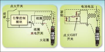 若從安裝在汽車分電器中的機(jī)械觸點技術(shù)算起,點火系統(tǒng)經(jīng)已走過一段很長的發(fā)展歷程。今天,這些機(jī)械觸點和分電器已經(jīng)退位。控制線圈中電流的IGBT開關(guān)已不僅僅是一個開關(guān),而是與引擎管理系統(tǒng)其余部分集成在一起的控制元件。線圈開關(guān)中需要包含的功能將變得越來越多,例如為改善燃油燃燒而開發(fā)出多火花系統(tǒng),以及為了監(jiān)視燃燒質(zhì)量而添加次級(火花塞)電流監(jiān)視功能。