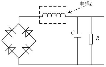 即功率因數校正( Pow er Factor Correct ion, PFC)是指有效功率與總耗電量( 視在功率) 之間的關系, 也就是有效功率除以總耗電量( 視在功率) 的比值。無源PFC 是指不使用晶體管等一些有源器件組成的校正電路, 一般情況下由二極管、電阻、電容和電感等無源器材組成。本文的PFC 主要是在整流橋堆和濾波電容之間加1 個電感, 具體原理如圖3 所示, 利用電感上的電流不能突變的特性來平滑電容充電強脈沖的波動, 改善電路中電流的畸變,并且利用電感上的電壓超前于電流這一特性來補償濾波電容電流超前電壓的特性, 使功率因數和電磁干擾都得以改善。