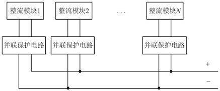 (4) 模塊并聯保護。每個模塊內部均有并聯保護電路, 可以保證模塊發生故障時自動退出系統, 從而不影響其他正常模塊的工作。模塊并聯輸出示意圖如圖6所示。