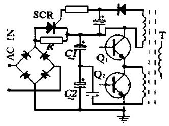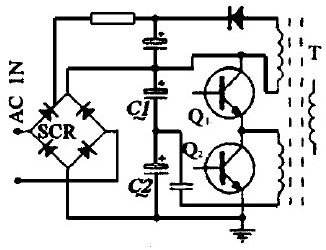 筆者在1000W半橋式開關(guān)電源的設(shè)計(jì)中, 首次用一個(gè)單向可控硅代替前端AC 輸入整流橋的一個(gè)橋臂, 其控制端由主變壓器的一個(gè)副繞組來(lái)控制(如圖9 所示) .這樣, 在電源接通的初始態(tài), 該整流橋處于半波整流態(tài)。待電源啟動(dòng)后, 可控硅導(dǎo)通, 整流橋轉(zhuǎn)為全波整流。由此可達(dá)到降低啟動(dòng)電壓的目的。同時(shí), 還可有效地抑止浪涌電流。實(shí)踐證明, 該電路簡(jiǎn)單可靠很值得大家借鑒。