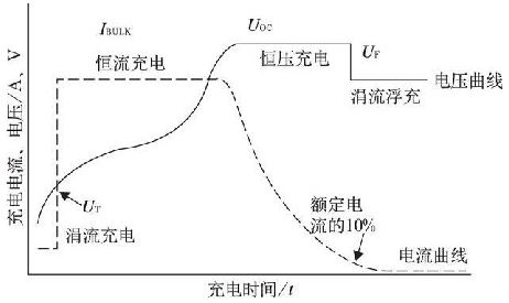 當(dāng)蓄電池電壓低于充電使能電壓UT , 充電器提供很小的涓流IT 進行充電, IT 一般約為0. 01C( C 為蓄電池容量)