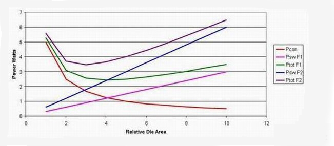 但是,在更高的工作頻率下,最佳裸片面積較小,從而帶來成本節(jié)約。實(shí)際上,在低頻率下,通過調(diào)整裸片面積來最小化損耗會(huì)帶來極高成本的設(shè)計(jì)。但是,轉(zhuǎn)到更高工作頻率后,我們就可以優(yōu)化裸片面積來降低損耗,從而縮小電源的半導(dǎo)體體積。這樣做的缺點(diǎn)是,如果我們不改進(jìn)半導(dǎo)體技術(shù),那么電源效率將會(huì)降低.此主題相關(guān)圖片如下:圖2 :提高工作頻率會(huì)導(dǎo)致更高的總體損耗。