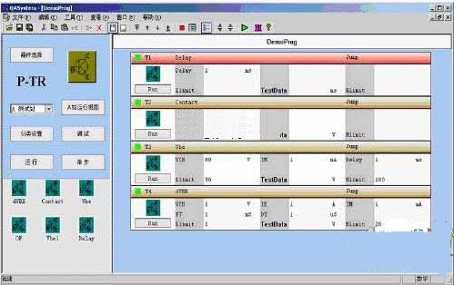 2、編輯模塊,用于器件選擇、分類設(shè)置、調(diào)試、建立測(cè)試程序,初始測(cè)試程序的界面如圖3所示: